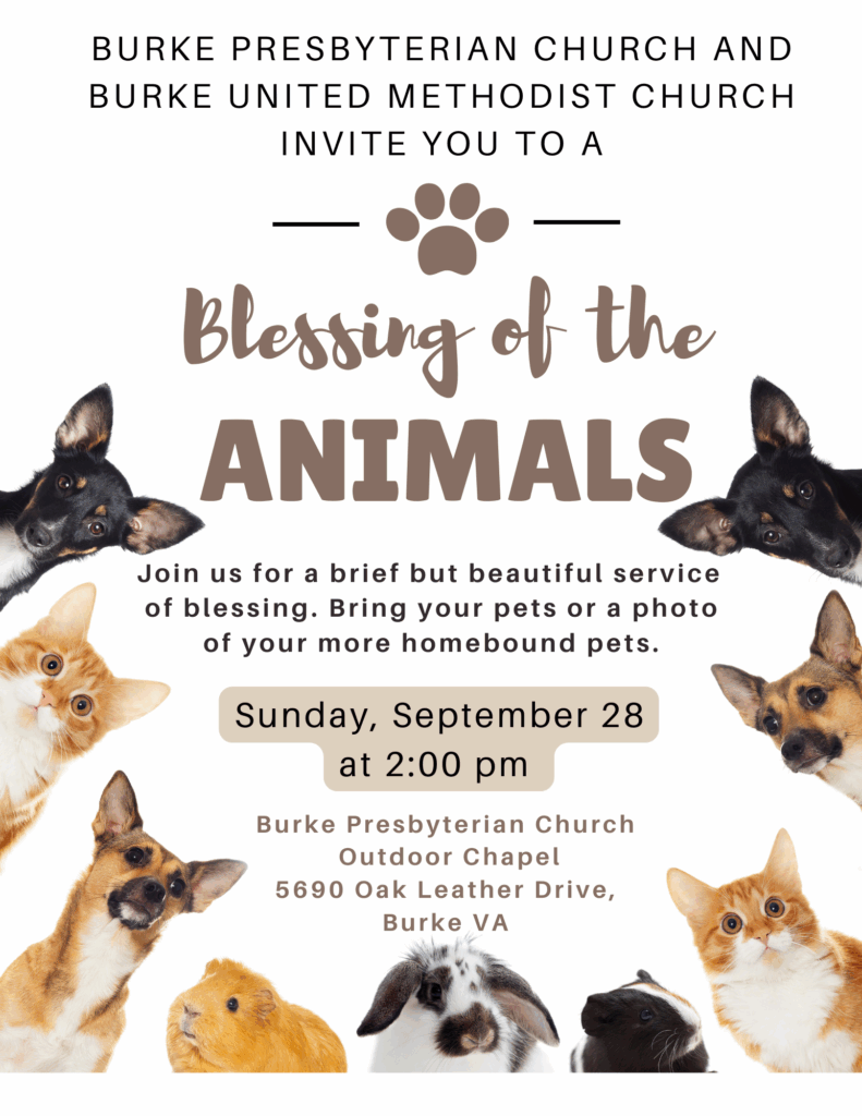 Join us for a brief but beautiful service of blessing. Bring your pets or a photo of your more homebound pets.